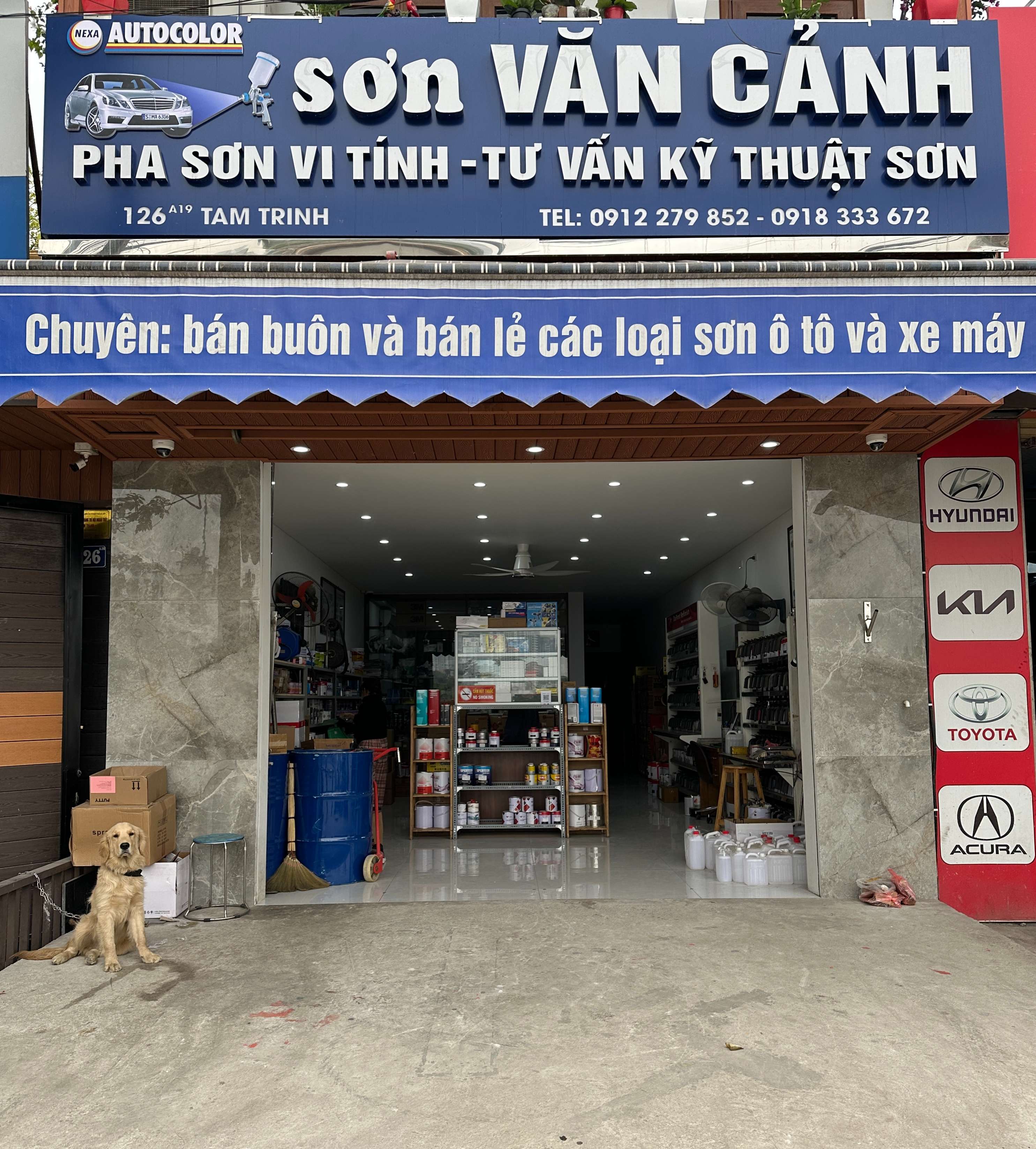 Cửa hàng Sơn ô tô Văn Cảnh tại số 126A19 Tam Trinh, Yên Sở, Hoàng Mai, Hà Nội.
